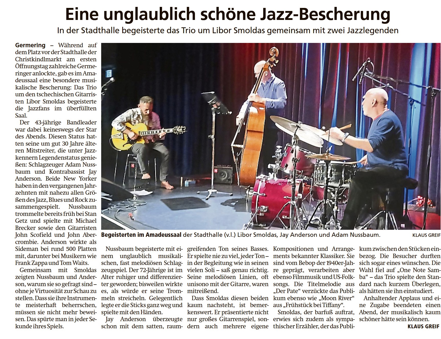 Libor Smoldas NYC Trio with Adam Nussbaum & Jay Anderson on a concert tour in Germany and the Czech Republic play on Jaaz Acoustics combo amps.